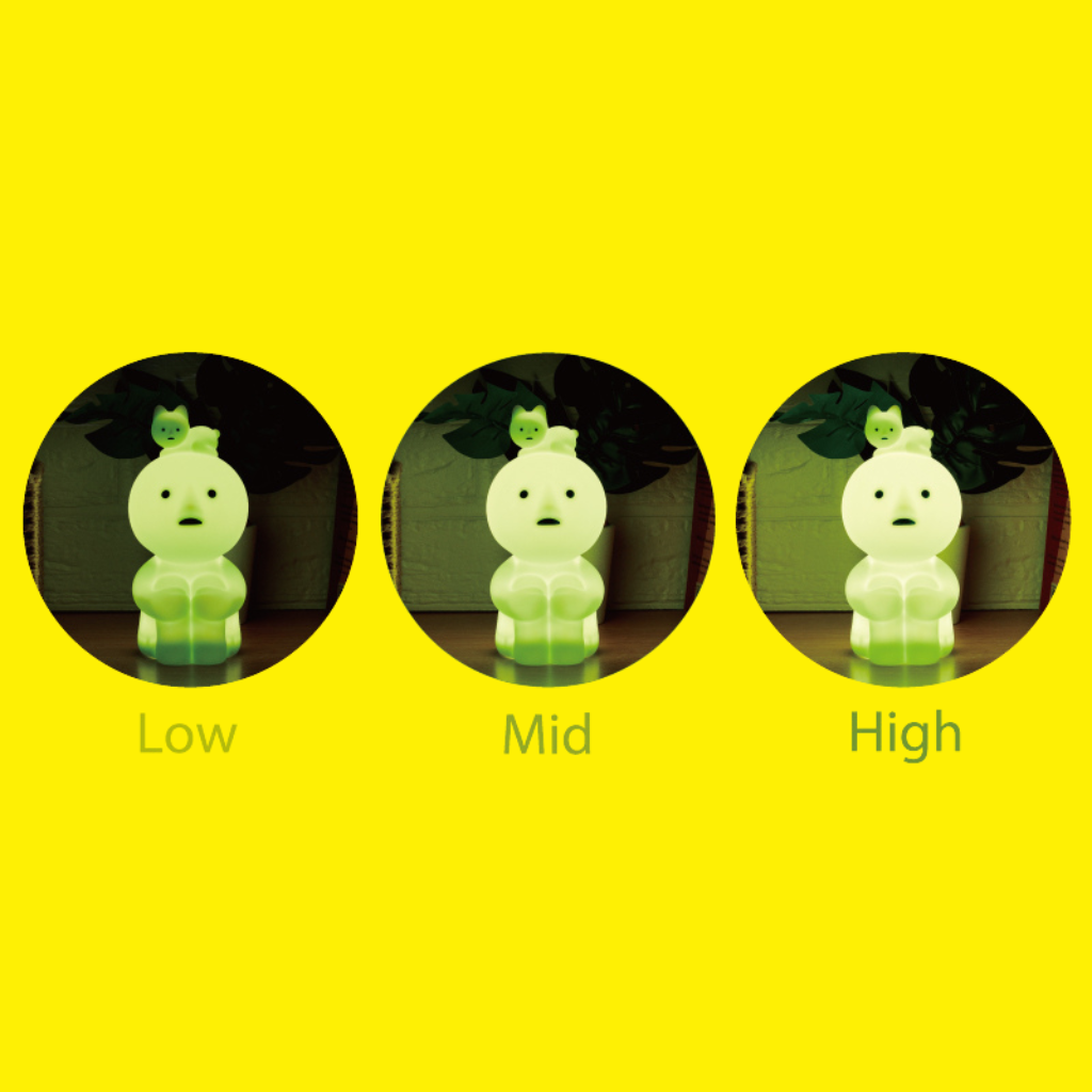 Une lampe tactile représentant un Smiski avec un chat sur la tête, dont l'intensité peut être réglée sur trois niveaux différents directement au toucher.
